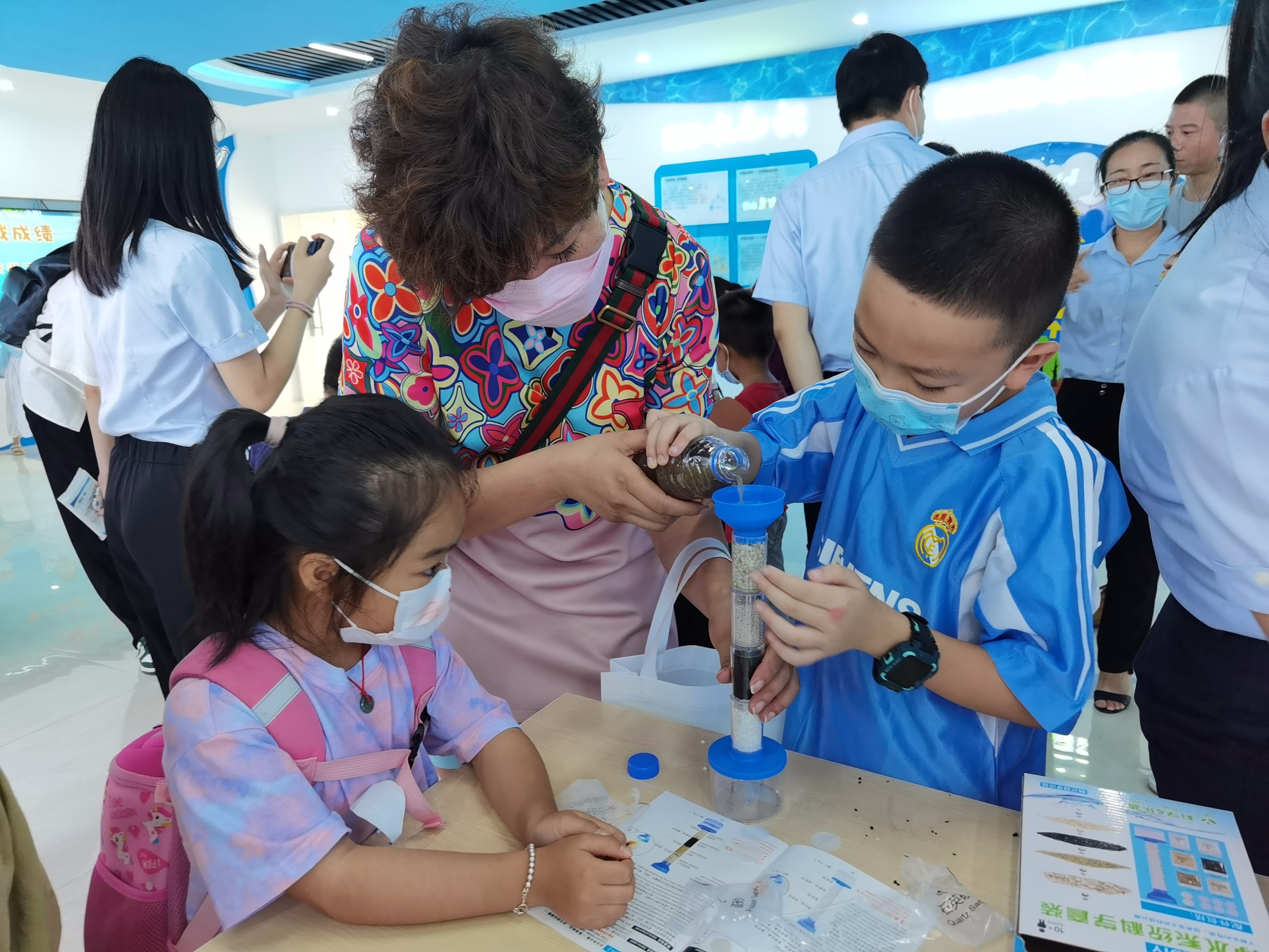 在活動現場,孩子們除了聽專業人員的講課,還通過眾多小游戲感受了環保、凈水的趣味性。