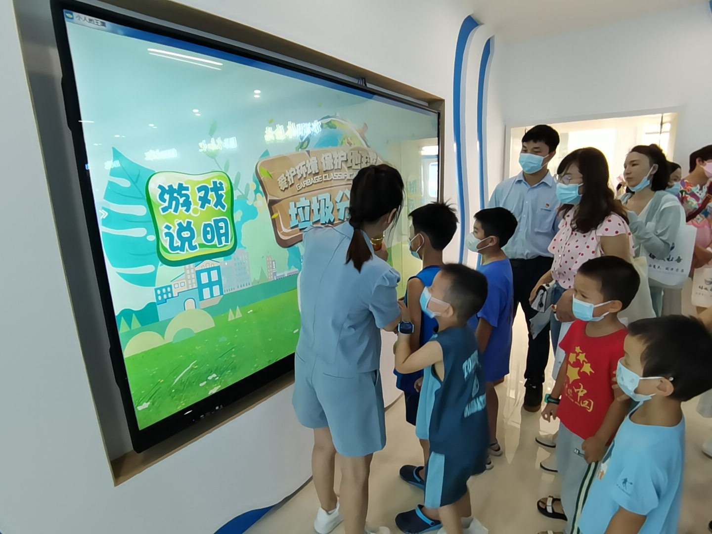 小朋友在積極踴躍的參加垃圾分類互動游戲。