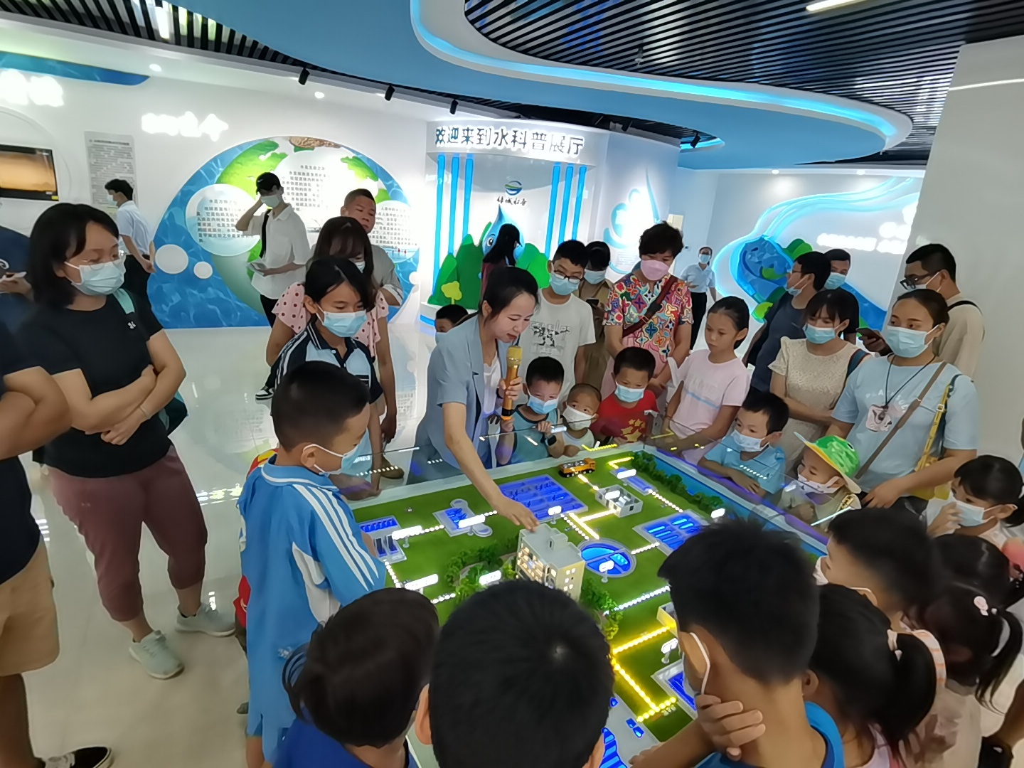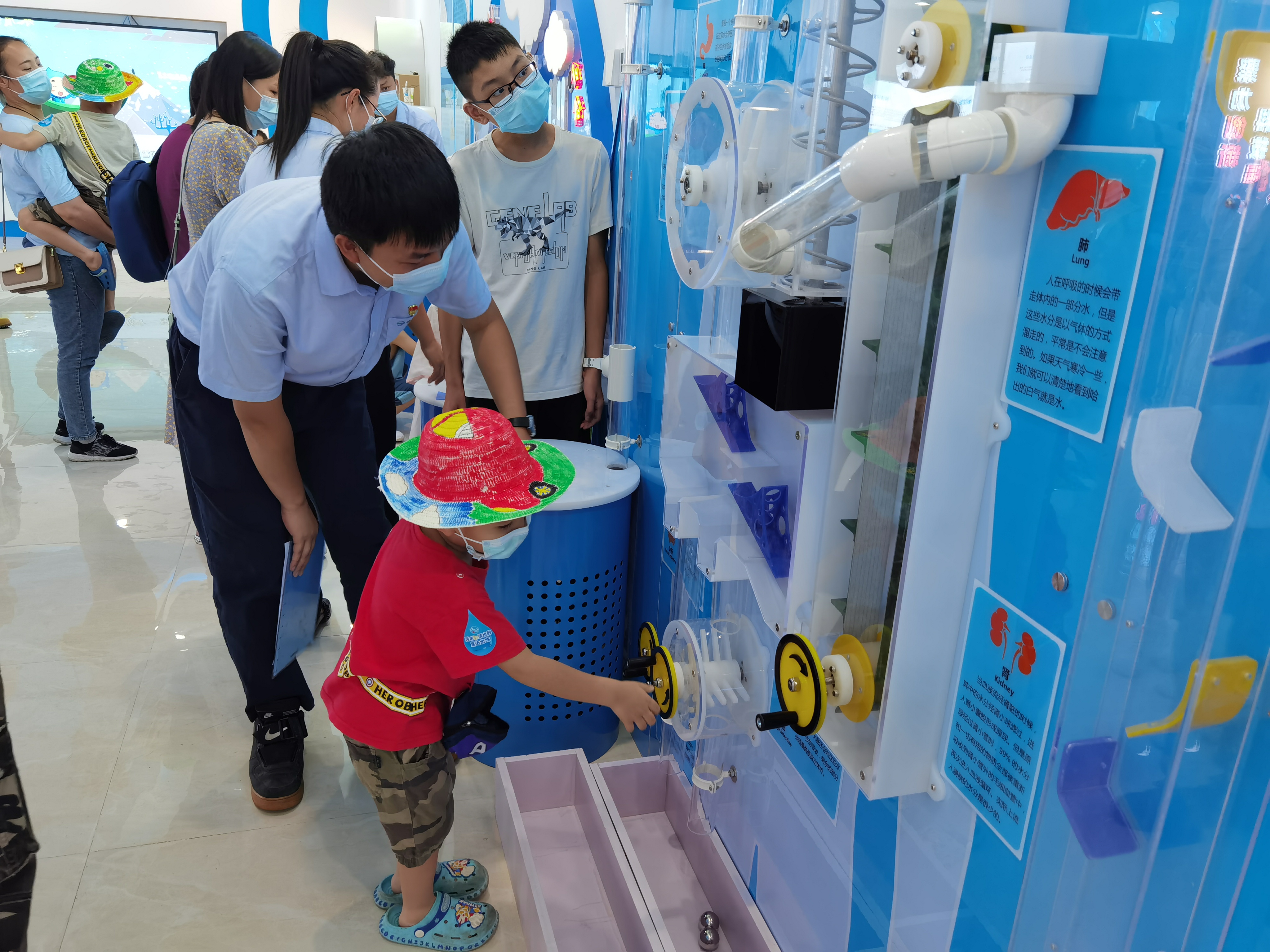 水科普展廳的人體水循環教具吸引了眾多小朋友來體驗。