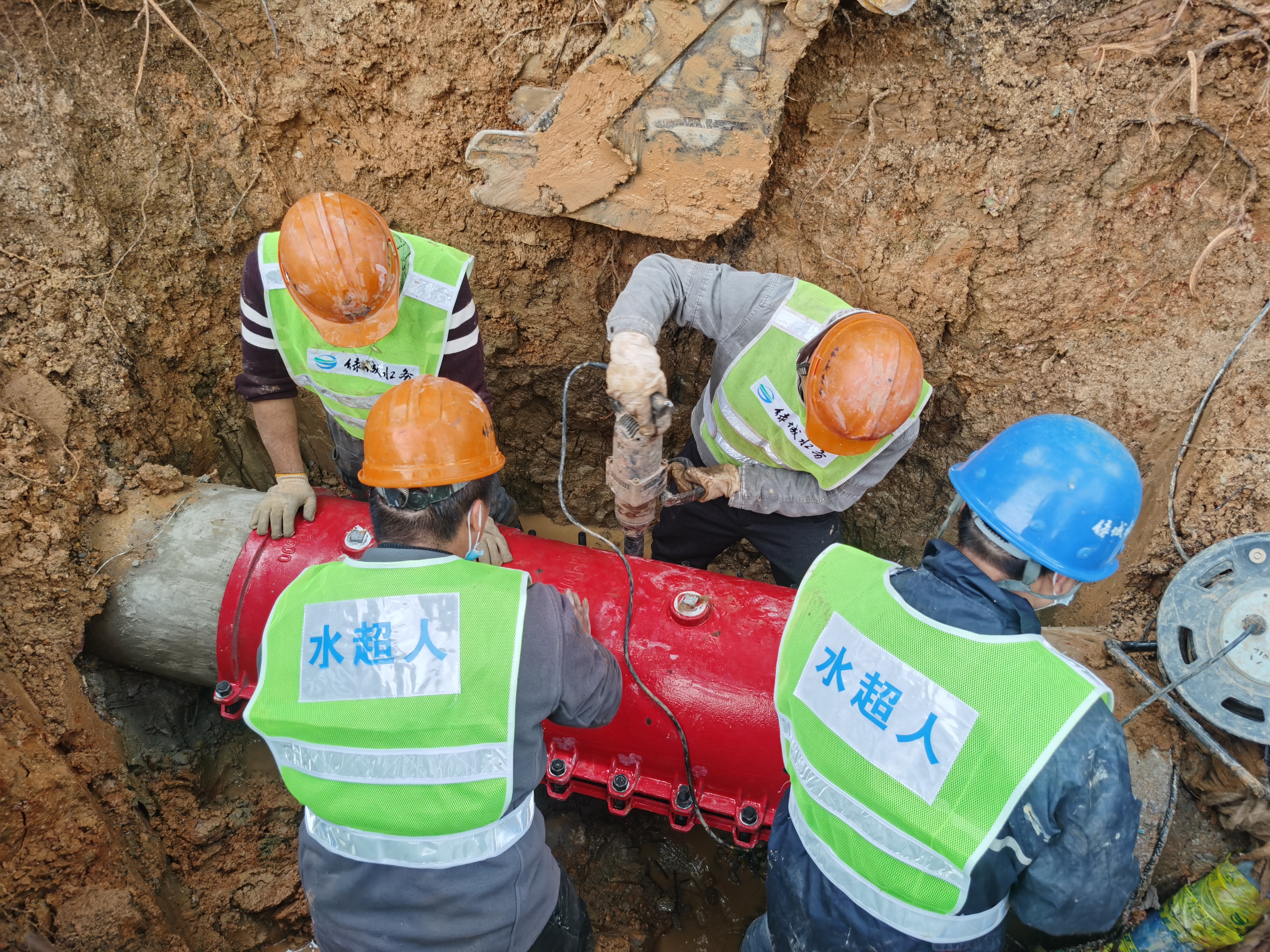 管網管理處“水超人”黨員先鋒示范服務隊晝夜不間斷搶修水管,為市民安全用水保駕護航。徐振峰 攝