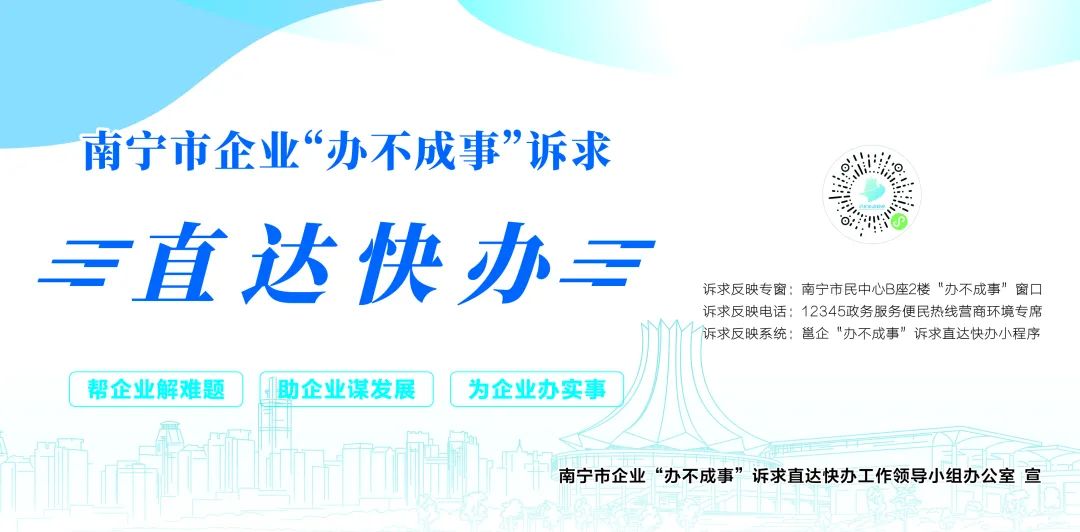 為貫徹落實中央、自治區(qū)經(jīng)濟(jì)工作會議精神,優(yōu)化首府營商環(huán)境,南寧市建立企業(yè)“辦不成事”訴求直達(dá)快辦工作機制,依托南寧市民中心“辦不成事”訴求窗口、12345優(yōu)化營商環(huán)境專線、“邕企辦不成事訴求快辦”小程序收集企業(yè)訴求,暢通訴求反映渠道,整合紀(jì)檢監(jiān)察監(jiān)督、行政監(jiān)督、司法監(jiān)督力量推動責(zé)任落實,構(gòu)建訴求受理、快速響應(yīng)、高效辦理、答復(fù)反饋、跟蹤督辦、改進(jìn)提升的全過程閉環(huán)管理體系,幫助企業(yè)破除“辦不成事”的難點、堵點、痛點、瘀點,及時解決企業(yè)經(jīng)營發(fā)展難題、積極回應(yīng)關(guān)心關(guān)切、幫助企業(yè)提振信心,切實為企業(yè)解難題、辦實事,為建設(shè)面向東盟開放合作的國際化大都市開好局起好步提供有力支撐。